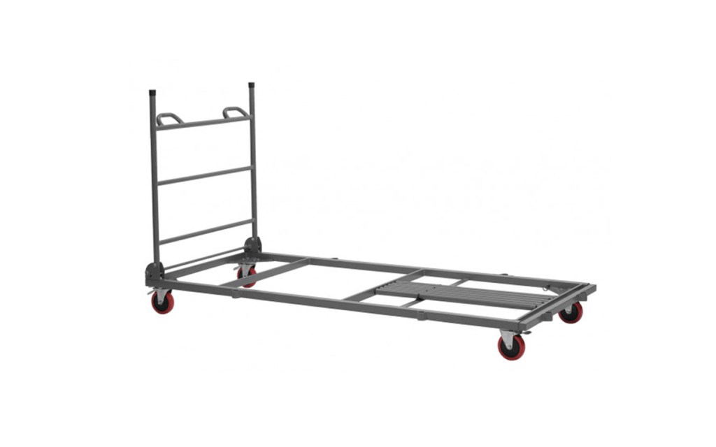 Le chariot de transport pliant est conçu pour optimiser la logistique de vos événements. Sa structure robuste en tube d’acier, avec finition époxy grise, supporte une charge maximale recommandée de 333 kg. Sa base extensible et réglable (de 193 à 254 cm) s’adapte parfaitement à vos besoins et permet de transporter jusqu’à : 18 grandes tables de 240 × 76 cm, 20 tables de 180/150 × 76 cm et 24 tables de 120 × 76 cm.