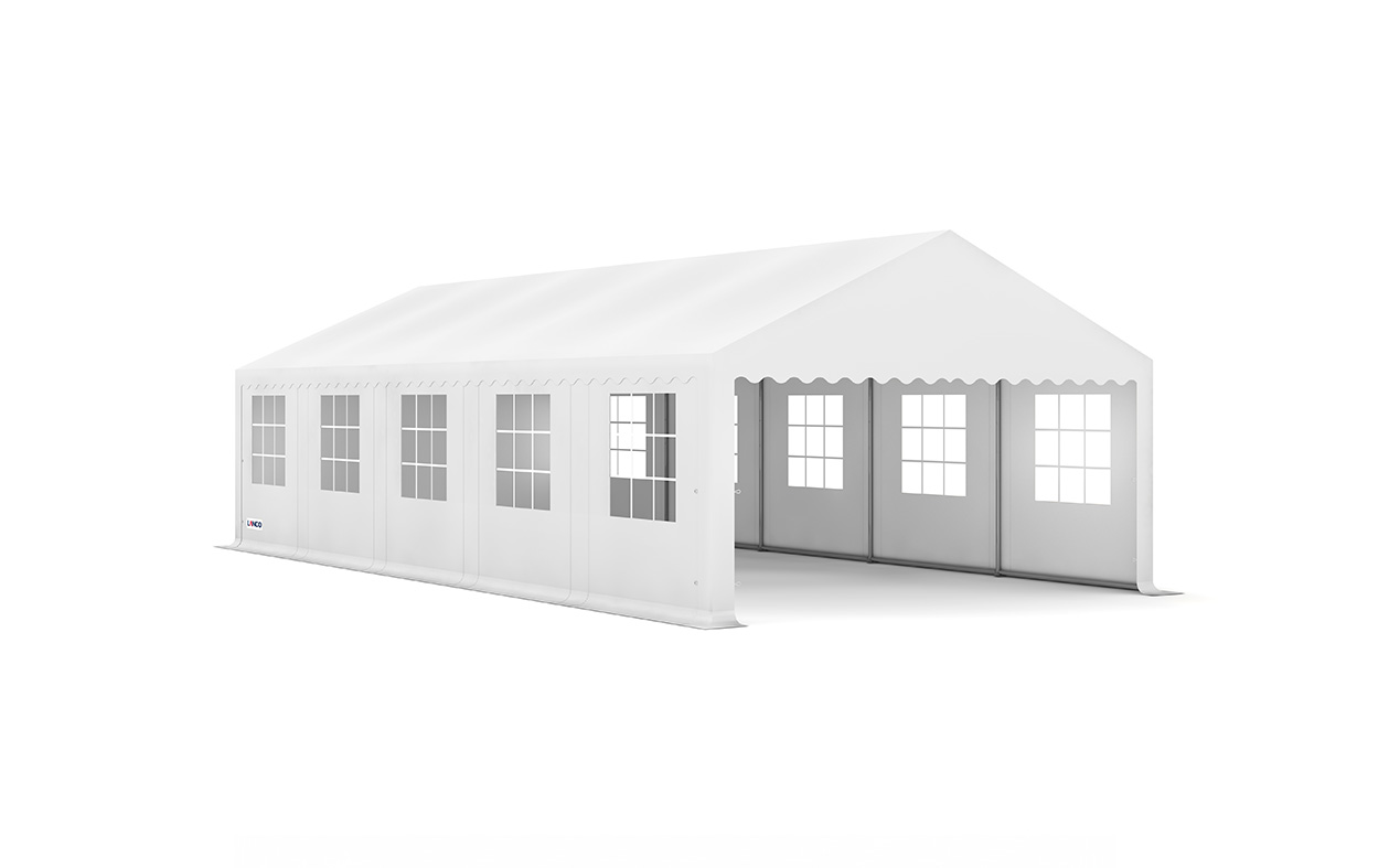 La tente événementielle GRANDE est idéale pour vos réceptions, événements d’entreprise et rassemblements de collectivités. Conçue pour durer, elle s’adapte aux fêtes de toute taille. Sa couverture est en polyester double enduction PVC de 650 g/m2, ignifuge (selon les normes DIN 4102 B1/M2), imperméable et imputrescible.